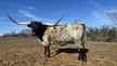 He is the TRUE BLACK, and has really been putting on the color,spots and speckles. He broke 4-5 inches of his horn but still has the awesome horn genetics. Great body, horn and color what more could you want in a bull